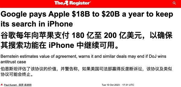 除此以外,苹果跟谷歌诚然在手机阛阓和操作系统是死敌,但在其他限制早就勾搭上了。谷歌每年要付给苹果几百亿好意思金,就为了当Safari的默许搜索引擎。